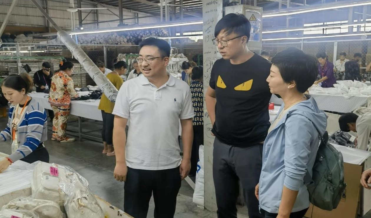 考察團(tuán)一行深入箱包生產(chǎn)車間,了解浙江土畜箱包具體生產(chǎn)情況,重點(diǎn)聽取了浙江土畜在柬埔寨投資概況、浙江土畜箱包業(yè)務(wù)及柬埔寨惠元箱包有限公司項(xiàng)目推進(jìn)情況等匯報(bào),并與當(dāng)?shù)仨?xiàng)目合作方進(jìn)行了交流。