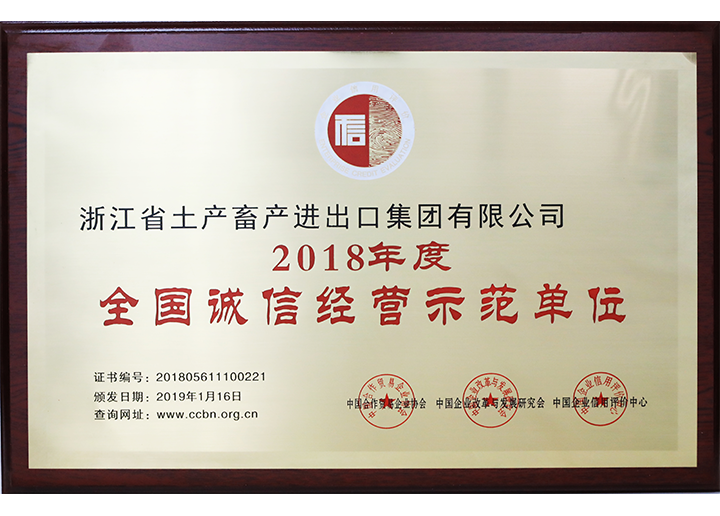 2018年度全國(guó)誠(chéng)信經(jīng)營(yíng)示范單位(2018)