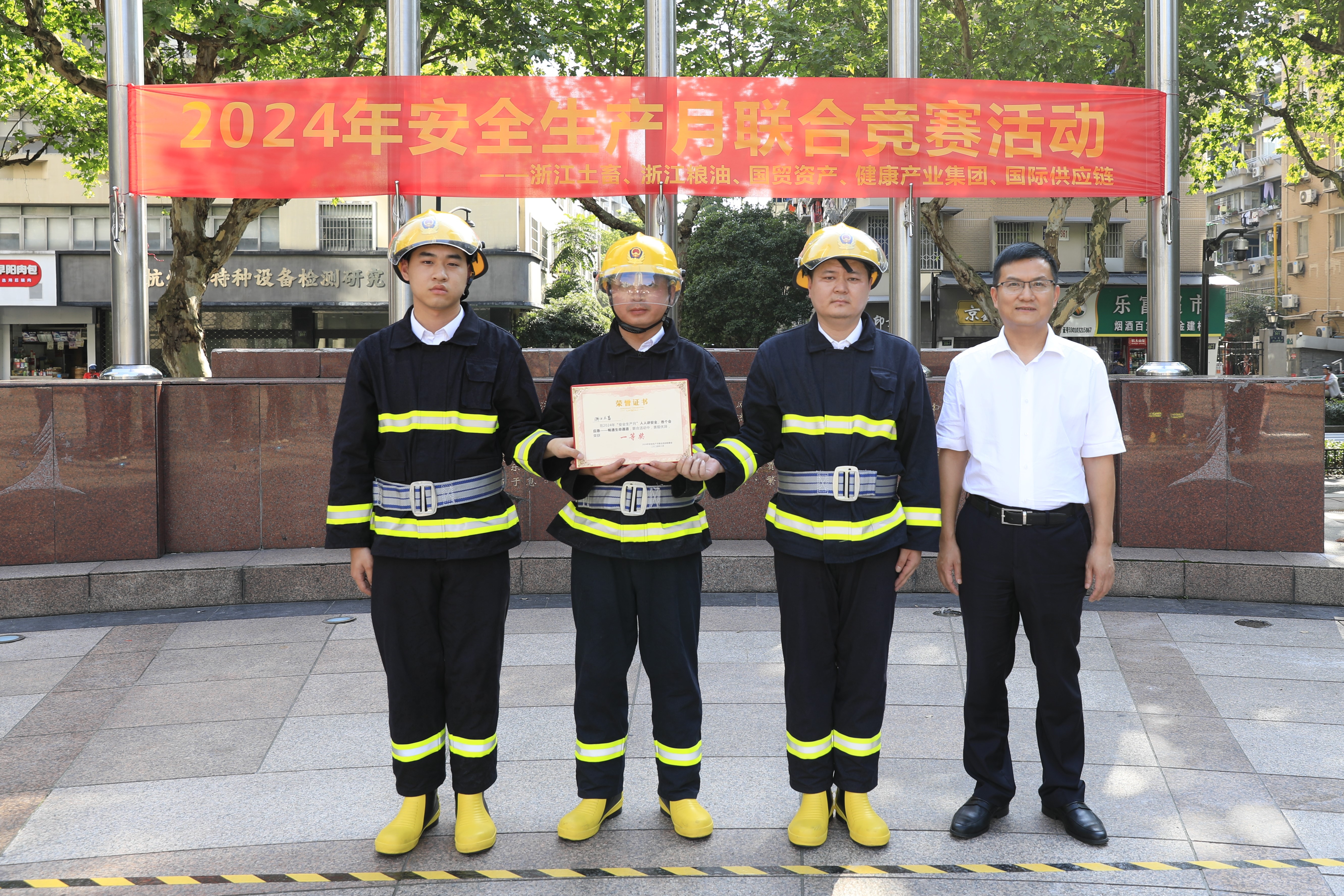 6月12日,浙江土畜、浙江糧油、國貿(mào)資產(chǎn)、健康產(chǎn)業(yè)集團(tuán)和國際供應(yīng)鏈聯(lián)合開展安全生產(chǎn)月系列活動。省國貿(mào)集團(tuán)黨委委員、總會計師、總法律顧問徐得均,省國貿(mào)集團(tuán)安全生產(chǎn)部總經(jīng)理何志華,天水街道平安辦副處長宓海東,相關(guān)企業(yè)主要負(fù)責(zé)人和安全生產(chǎn)分管領(lǐng)導(dǎo)等出席活動。