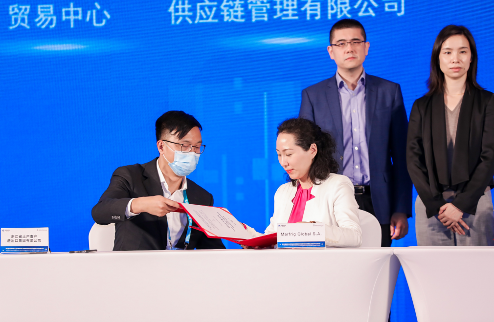 開展首日,浙江土畜參加浙江首批進(jìn)口采購簽約活動——浙江歐洲數(shù)字經(jīng)濟(jì)與高新技術(shù)產(chǎn)業(yè)高峰對接會,與巴西肉類出口龍頭企業(yè)BRF公司簽訂3000萬美元豬肉和雞肉進(jìn)口合同。11月6日,浙江土畜先后參加省交易團(tuán)進(jìn)口采購集中簽約儀式、省重點(diǎn)平臺推介會,分別與西班牙Litera Meat,巴西、烏拉圭Marfrig簽訂1500萬美元豬肉和1000萬美元牛肉進(jìn)口合同。